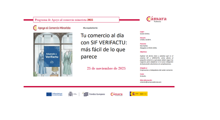 En el marco del Programa de Apoyo al Comercio Minorista 2025, del Ministerio de Economía, Comercio y Empresa y Cámara España con la cofinanciación de los fondos FEDER, la Cámara de Comercio de Valencia ha organizado dicho taller gratuito, dirigidos a empresarios y emprendedores del comercio.